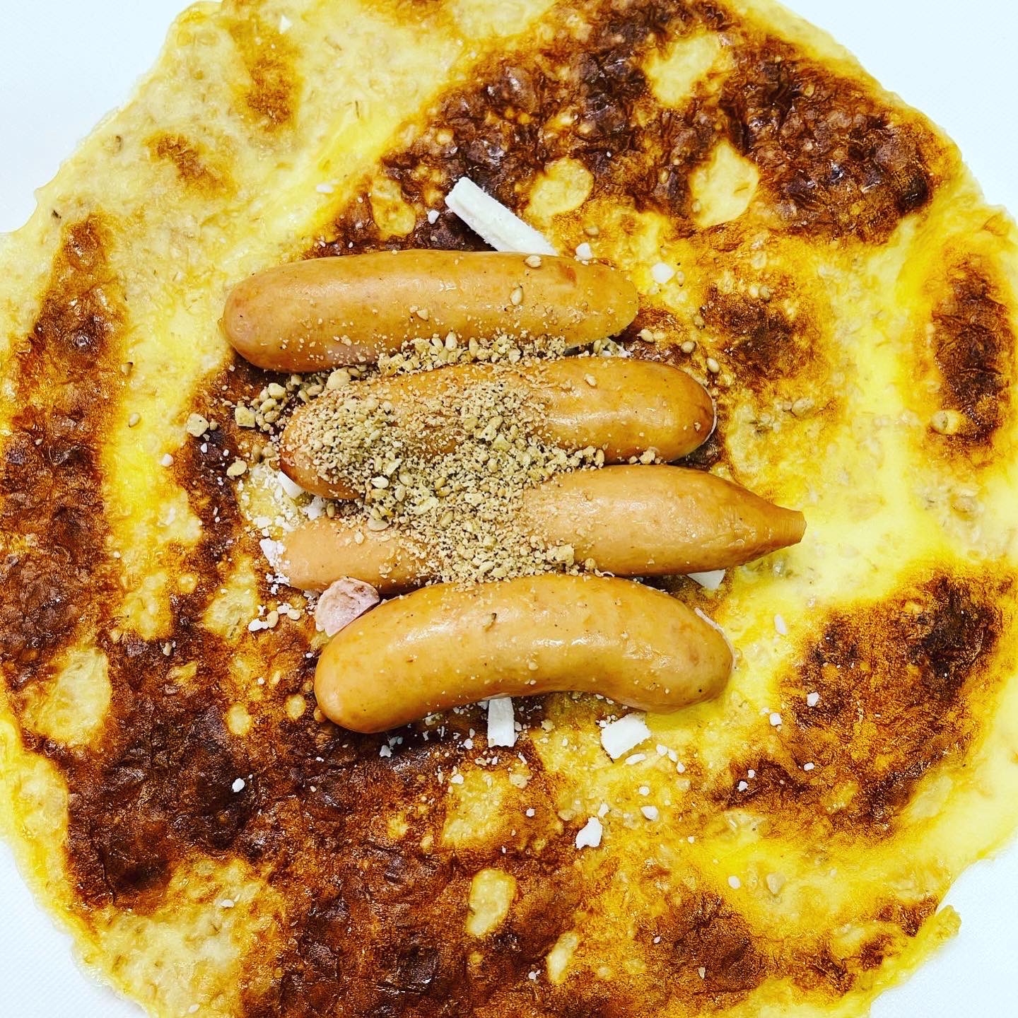 生地焼いてから具を巻いて折り目からもうひと焼きです。