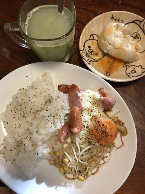 平日の朝から『パリパリもやしと目玉焼き』です。