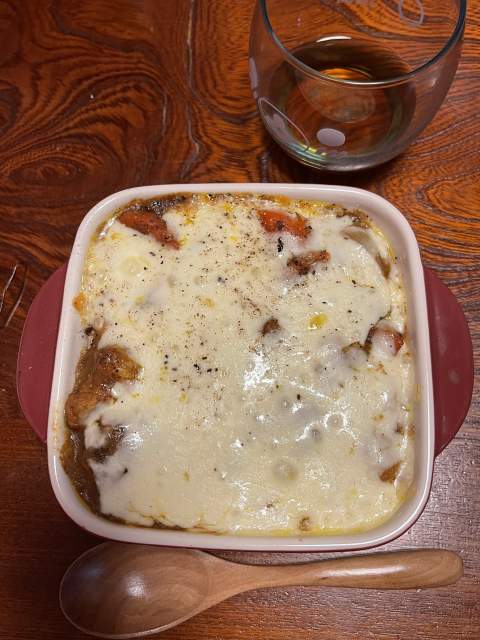 今日はホテル黒部さんの黒子のカレーでもう一品アレンジしました。 黒子のカレーで焼きカレー カレー料理では定番ですよね またまた糖質ゼロ麺です。・ミジン切りまでしないけどザクザクって感じで水分を飛ばす。・グラタン皿に油を薄く引いて麺を入れて黒子のカレー、チーズをトッピング・あとは余熱ガンガンのオーブントースターで焼く。 簡単です。 ちょっとチーズ多かったかも。カレーの甘さとチーズのバランスはまあまあよかったです。味は優しいけどガツっときた逸品でした^^